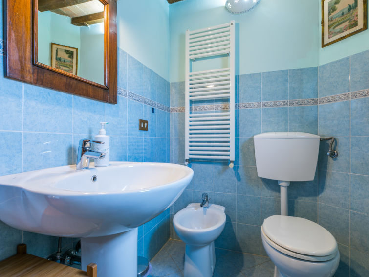 "Villa il Giglio", 7-Zimmer-Villa 230 m2 auf 2 Stockwerken. Geräumig, vollständig renoviert, komfortabel und stilvoll eingerichtet: Eingang. Wohnzimmer mit 1 Diwanbett (160 cm). 1 Doppelzimmer mit Dusche/Bidet/WC. Ausgang zum Garten. Wohnküche (Backofen, Geschirrspüler, Gasherd, 5 Flammen, Toaster, Wasserkocher, Mikrowelle, Tiefkühler, elektrische Kaffeemaschine) mit Esstisch. Ausgang zum Garten. Sep. WC. Obergeschoss: grosses Wohnzimmer mit offenem Kamin und TV (Flachbildschirm). 1 Doppelzimmer mit Dusche/Bidet/WC. Durchgangszimmer mit 1 Doppelbett und Dusche/Bidet/WC. Verbundenes Zimmer mit 1 Bett (120 cm). Natursteinboden. Komfortable Einrichtung im Landhausstil. Grosser Gartensitzplatz. Terrassenmöbel, Gartengrill, Liegestühle, Abstellkammer. Schöne Panoramasicht auf die Landschaft. Zur Verfügung: Waschmaschine, Bügeleisen, Kinderhochstuhl, Babybett bis 2 Jahre, Haartrockner. Internet (Wireless LAN, gratis). Parkplatz beim Haus. Bitte beachten: Nichtraucher-Unterkunft. Eigener Eingang. IT048038C22AOF94BI