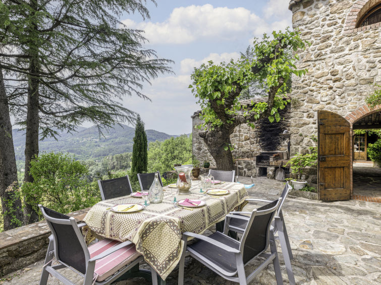 Huis 4-kamers 90 m2. Comfortabel en mooi ingericht: woon-/eetkamer met open haard en TV. 1 kamer met 1 2-pers bed (140 cm, lengte 190 cm), bad/WC. 1 kamer met 1 2-pers bed (160 cm, lengte 190 cm), douche/WC. Uitgang naar het terras. Keuken (oven, afwasmachine, 3 inductiekookplaten, broodrooster, waterkoker, magnetron, diepvriezer, elektrische koffiemachine). Bovenverdieping: 25 m2, Studio, venster naar het binnenplaats met 2 bedden (90 cm, lengte 190 cm), kookhoek en douche/WC. Terras 30 m2, overdekt terras 30 m2, op het zuiden gelegen en op het westen gelegen. Terrasmeubelen, barbecue, ligstoelen. Zeer mooi panoramazicht op de bergen, het dal en het landschap. Ter beschikking: wasmachine, kinderstoel, kinderbed. Internet (WiFi, gratis). Parkeerplaats (4 Auto's). Rookmelders. FR6785.100.1