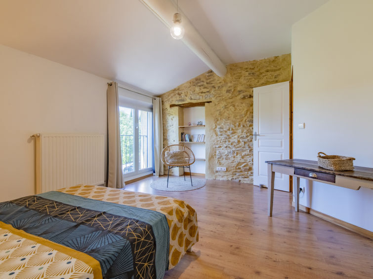 Mas "Le Mas des Buis", gerenoveerd in 2016. In de plaats, 1.5 km van het centrum van Uchaux. Voor alleengebruik: terrein 4.500 m2 (omheind), openluchtzwembad (10 x 5 m, 140 - 140 cm diepte, seizoensgebonden beschikbaarheid: 01.Jun. - 30.Sep.). Wissel van linnengoed 1 maal per week. Wissel van handdoeken 1 maal per week. 1 maal per week schoonmaak (incl.). Parkeerplaats op het terrein. Winkel 1.5 km, supermarkt 5 km, restaurant 500 m, bakkerij 150 m, bushalte "Centre Serignan du Comtat" 4.3 km. Attracties in de buurt: Orange 8 km, Vaison la Romaine 32 km, Avignon 41 km, Mont Ventoux 62 km. Auto noodzakelijk. Geschikt voor families.