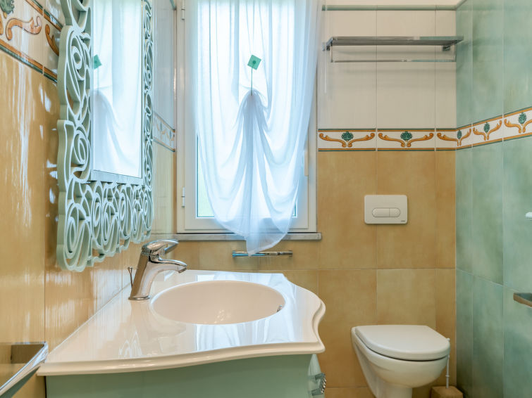 Villa 4-kamers 85 m2. Mooi en smaakvol ingericht: woon-/eetkamer met Sat-TV (Flatscreen TV), air-conditioning en heteluchtverwarming. Uitgang naar de tuin, naar de zitplaats in de tuin. 1 2-pers. kamer met air-conditioning en heteluchtverwarming. 1 2-pers. kamer met air-conditioning en heteluchtverwarming. 1 kamer met 1 bed, 1 uitschuifbaar bed en ventilator. Uitgang naar de tuin, naar de zitplaats in de tuin. Kookhoek (4-pits kookplaat, oven, afwasmachine, broodrooster, waterkoker, magnetron, elektrische koffiemachine). Uitgang naar de tuin, naar de zitplaats in de tuin. 2 douche/bidet/WC's. Gas-verwarming (extra). Verwarming alleen beschikbaar van 01.12. tot 31.03. Ruime zithoek in de tuin 35 m2, overdekt, zithoek in de tuin 25 m2, overdekt. Barbecue, ligstoelen (4). Uitzicht op het zwembad en de tuin. Ter beschikking: wasmachine, kluis, strijkijzer, klamboe, kinderbed tot 2 jaar, haardroger. Internet (Internet (WiFi), gratis). IT082027C2UH7VLPW4