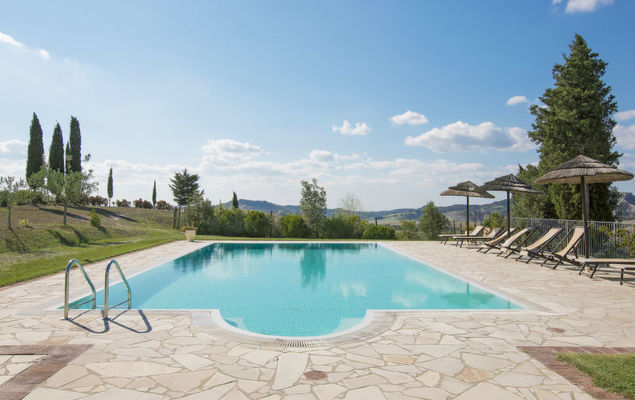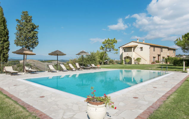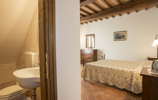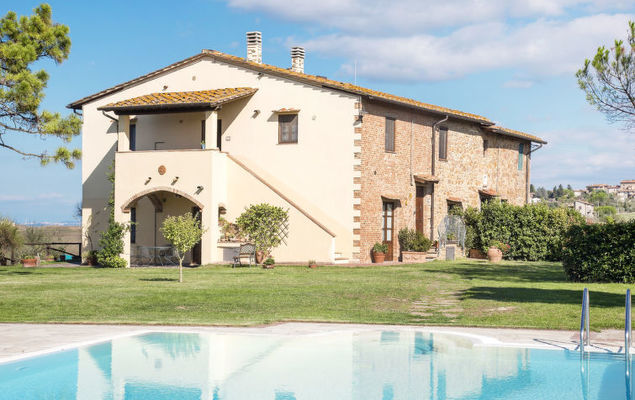 Mooi boerderij "Podere Sant'Anna", van 2 verdiepingen, vrijstaand, gerenoveerd in 2002, omgeven door wijngaarden. 5 appartementen in de woning. In het gehucht Sughera, 9 km van het centrum van Montaione, 25 km van het centrum van San Gimignano, 60 km van zee. Voor medegebruik: terrein 5.000 m2 (omheind) met planten en bomen, vijver, openluchtzwembad (13 x 6 m, seizoensgebonden beschikbaarheid: 01.Apr.-20.Okt.). Buitendouche, tuinmeubelen, barbecue, onderhoud zwembad door de eigenaar/tuinman. Wissel van linnengoed (extra wissel te betalen). Wissel van handdoeken (extra wissel te betalen). Parkeerplaats op het terrein. Supermarkt 9 km. Attracties in de buurt: Volterra 40 km, Pisa 55 km, Firenze 60 km. Let op: geschikt voor families, baby uitrusting (incl.). De woningen kunnen onderling van inrichting verschillen.