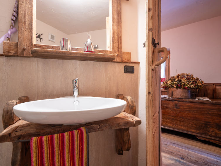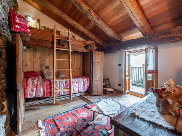 Appartement 3-kamers 50 m2 op 2 verdiepingen. Gedeeltelijk afgeschuinde daken, volledig gerenoveerd in 2016, comfortabel en met veel hout ingericht: woon-/eetkamer met open haard, eettafel en TV (Flatscreen TV). Doorgangskamer met 1 2-pers bed. Kookhoek (4 inductiekookplaten, magnetron). Douche/bidet/WC. Bovenverdieping: 1 kamer met 1 x 2 stapelbedden. Uitgang naar het balkon. Parketvloeren, natuurstenen vloeren. Ligstoelen. Uitzicht op de bergen en het dal. Ter beschikking: haardroger, haardhout (gratis). Niet rokers woning. Privé ingang. IT007006C2NJ5FF3MW