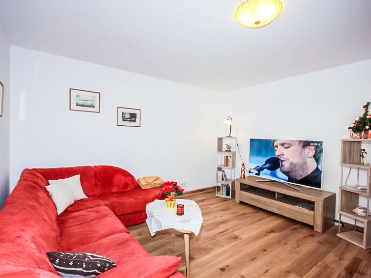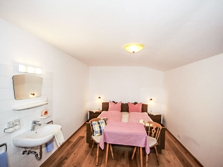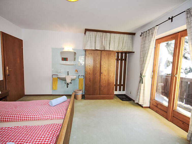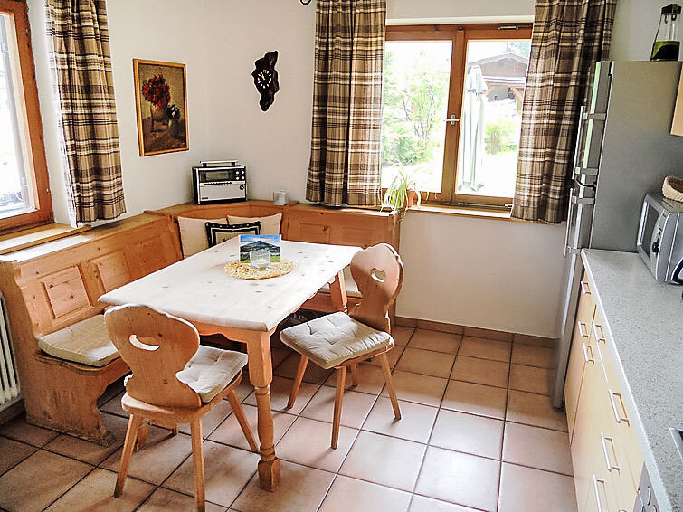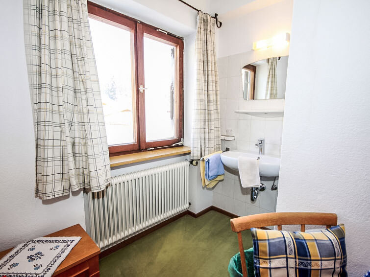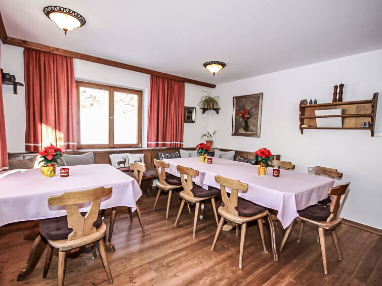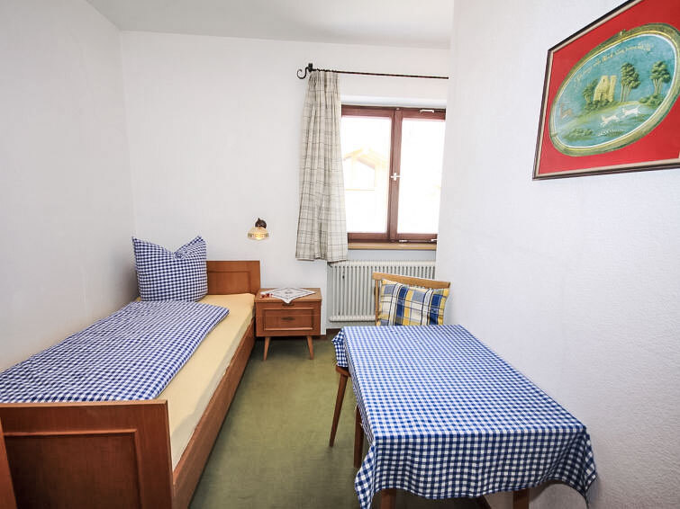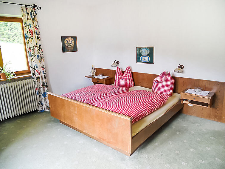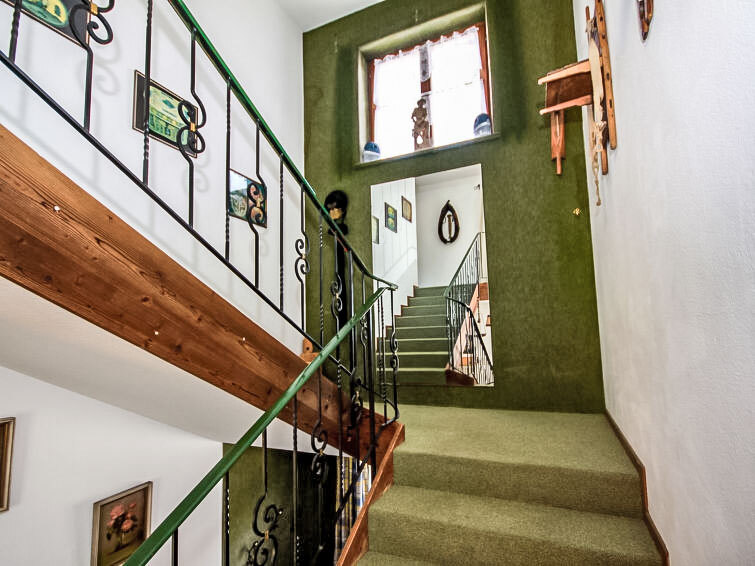 "Fliegerklause", huis 8-kamers 180 m2 op 3 verdiepingen. Rustiek ingericht: hal. Woonkamer met Sat-TV en Flatscreen TV. Keuken (oven, afwasmachine, 5 keramische glas kookplaten, waterkoker, magnetron, diepvriezer, elektrische koffiemachine) met eethoek. Bad/douche, aparte WC. Souterrain: 1 2-pers. kamer met 1 2-pers bed (2 x 90 cm, lengte 190 cm), wastafel. Bovenverdieping: 2 2-pers. kamers, elke kamer heeft 1 2-pers bed (2 x 90 cm, lengte 190 cm), wastafel. Uitgang naar het balkon. 1 2-pers. kamer met 1 2-pers divanbed (2 x 90 cm, lengte 200 cm), wastafel. 1 2-pers. kamer met 1 2-pers bed (2 x 90 cm, lengte 190 cm), wastafel. 1 kamer met 1 bed (90 cm, lengte 190 cm), wastafel. Douche/WC, aparte WC. Groot balkon. Bergruimte. Mooi uitzicht op de bergen en het landschap. Geschikt voor families. Rookvrij huis. Rookmelders.