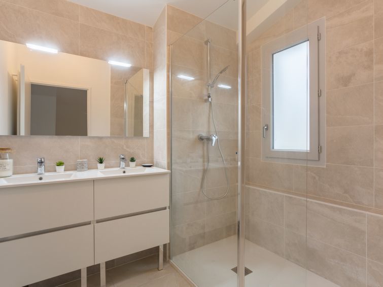 Huis in een rij 4-kamers 100 m2 op 2 verdiepingen, op het zuidwesten gelegen. Comfortabel en mooi ingericht: woon-/eetkamer 30 m2 met TV. Uitgang naar het terras. 1 kamer met 1 2-pers bed (140 cm, lengte 190 cm). Uitgang naar het terras. Open keuken (oven, afwasmachine, 3 inductiekookplaten, broodrooster, waterkoker, magnetron, diepvriezer, elektrische koffiemachine). Douche/WC. Gas-verwarming. Bovenverdieping: 1 kamer met 1 2-pers bed (140 cm, lengte 190 cm). Uitgang naar het terras. 1 kamer met 2 bedden (80 cm, lengte 190 cm). Uitgang naar het terras. Douche, aparte WC, dubbele wastafels. Terras 12 m2, overdekt, op het westen gelegen terras 16 m2, overdekt, op het westen gelegen, zithoek in de tuin 20 m2. Terrasmeubelen, ligstoelen (2). Ter beschikking: wasmachine, strijkijzer, haardroger. Internet (Internet (WiFi), gratis). Parkeerplaats nr. A1. Geschikt voor families woning aan de straatzijde. Niet rokers woning. Rookmelders. 40296000438FS