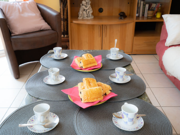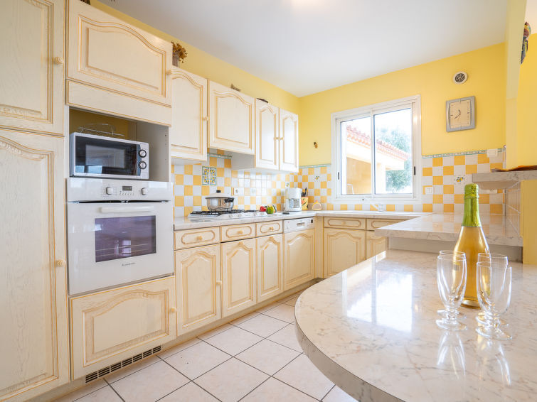 Villa 6-kamers 142 m2 op 2 verdiepingen. Mooi ingericht: woon-/eetkamer 40 m2 met TV en DVD. 1 kamer met 1 2-pers bed (160 cm, lengte 200 cm). 1 kamer met 2 bedden (90 cm, lengte 190 cm). Open keuken (4-pits kookplaat, oven, afwasmachine, magnetron, diepvriezer) met doorgeefluik. Bad/douche, aparte WC. Bovenverdieping: 2 kamers, elke kamer heeft 1 2-pers bed (160 cm, lengte 200 cm). 1 kamer met 1 x 2 stapelbedden (90 cm, lengte 190 cm). Douche/WC. Verwarming. Terras 100 m2, op het zuidoosten gelegen. Terrasmeubelen, ligstoelen (8). Mooi uitzicht. Ter beschikking: wasmachine. Internet (Internet (WiFi), gratis). Parkeerplaats, garage. Maximaal 1 huisdier/hond toegestaan. Rookmelders.