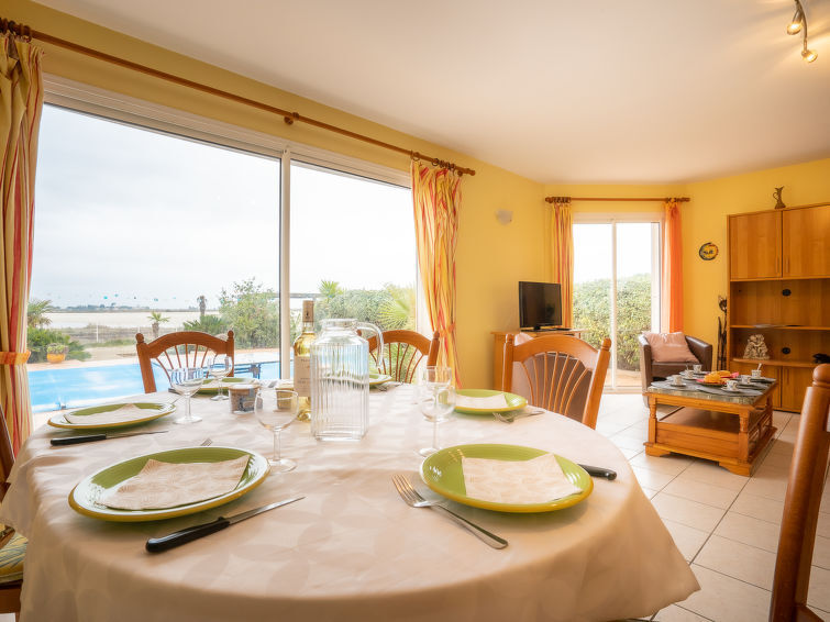 Mooie villa, recent gebouwd, aan een kant grenzend aan de garage, gelegen in een nieuwe woonwijk, langs een klein kanaal en zoutpannen comfortabele villa "Orée des Salines". Aan de rand van de plaats, in een woonwijk, 1.9 km van zee. Voor alleengebruik: terrein 550 m2 (omheind), openluchtzwembad (8 x 4 m, 100 - 170 cm diepte, seizoensgebonden beschikbaarheid: 15.Mei. - 15.Okt.) met trap en zout-elektrolyse. Buitendouche, poolhouse met koelkast, terras (100 m2), barbecue. Winkel 1 km, supermarkt 1 km, bushalte "HLM" 1.2 km, treinstation 2.4 km, zandstrand "Nord" 1.9 km, openluchtzwembad 2 km, thermaalbad "Thalazur Port Camargue" 4.7 km. Golfterrein (42 holes) 10 km, manege 1.4 km. Attracties in de buurt: Casino Flamingo 550 m, Seacquarium 1.9 km, Arènes Grau du Roi 3.1 km, Aigues Mortes 6 km, Grande Motte 12 km, Nîmes 49 km. Wandelgebied P13. De sleuteloverdracht vindt plaats bij het agentschap Interhome in Port Camargue, 2 km. Vliegveld 24 km van het huis. Poolhuisje met bar, koelkast, barbecue. LET OP: zwembad met onderhoudssysteem op basis van zout. Mooi uitzicht op de zoutpannen en de Camargue.