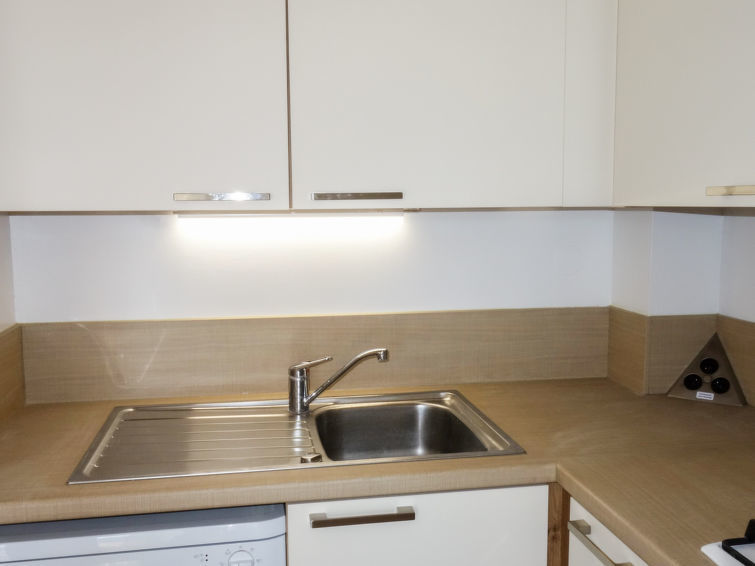 Appartement 3-kamers 42 m2, op de begane grond. Woon-/eetkamer met 1 2-pers divanbed (120 cm, lengte 185 cm), TV. 1 kamer met 1 2-pers bed (140 cm, lengte 185 cm). 1 kleine kamer met 1 x 2 stapelbedden (80 cm, lengte 190 cm). Kookhoek (3-pits kookplaat, oven, afwasmachine, magnetron). Badkamer, aparte WC. Verwarming. Terras 18 m2, op het zuiden gelegen. Terrasmeubelen, ligstoelen. Uitzicht op de haven. Ter beschikking: Internet (WiFi, extra). Parkeerplaats. Maximaal 1 huisdier/hond toegestaan. Rookmelders. FR42701