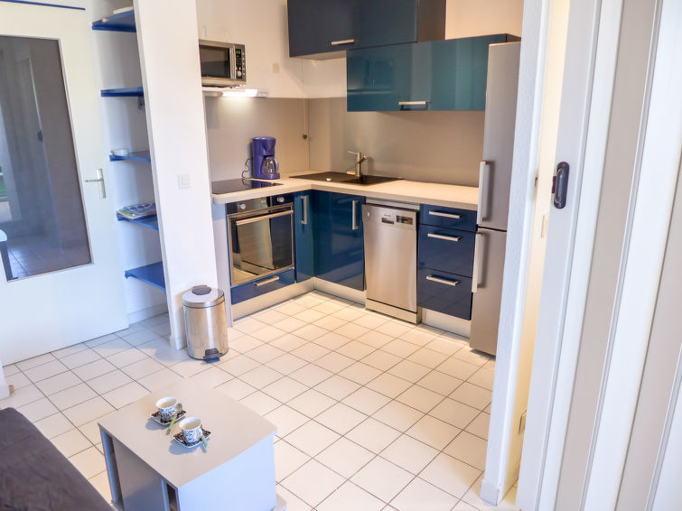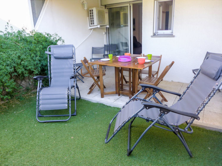 Appartement 2-kamers 25 m2, op verhoogde begane grond. Woon-/eetkamer met TV (Flatscreen TV). Uitgang naar het terras. 1 kleine kamer 5 m2 met 1 2-pers bed (140 cm, lengte 190 cm). Hal met 1 x 2 stapelbedden (90 cm, lengte 190 cm). Open keuken (oven, afwasmachine, 4 keramische glas kookplaten, broodrooster, waterkoker, magnetron, diepvriezer, elektrische koffiemachine). Douche, aparte WC. Air-conditioning. Zithoek in de tuin 10 m2, op het noordwesten gelegen. Terrasmeubelen. Ter beschikking: Internet (Internet (WiFi)). Parkeerplaats. Maximaal 1 huisdier/hond toegestaan. Rookmelders, geen lift. FR12676