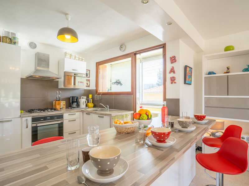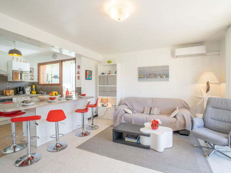 Appartement 3-kamers 71 m2 op de 2e verdieping. Het objekt is geschikt voor 4 volwassenen + 2 kinderen. Eenvoudig en comfortabel ingericht: woon-/eetkamer met TV en air-conditioning. Uitgang naar het terras. 1 kamer met 1 2-pers bed (1 x 140 cm, lengte 190 cm). Uitgang naar het terras. 1 kamer met 1 x 2 stapelbedden (80 cm, lengte 190 cm), 1 2-pers bed (1 x 140 cm, lengte 190 cm). Open keuken (oven, afwasmachine, 4 kookpitten (vlammen), broodrooster, waterkoker, magnetron, diepvriezer, elektrische koffiemachine). Douche, aparte WC. Gas-verwarming. Terras 12 m2, overdekt, op het zuiden gelegen. Terrasmeubelen. Ter beschikking: wasmachine, strijkijzer, kinderbed tot 2 jaar. Internet (Internet (WiFi), gratis). Garage. TV alleen FR. Rookmelders. Aanbod door een particulier volgens art. 155, IV van CGI. 13028000094ZT