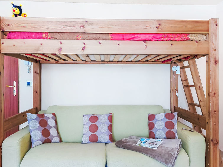 "Central résidence 3", appartement 2-kamers 35 m2 op de 2e verdieping. Doelmatig ingericht: woon-/eetkamer met 1 2-pers divanbed (140 cm, lengte 190 cm), TV, Flatscreen TV en DVD. Uitgang naar het balkon. 1 kamer met 1 2-pers bed (140 cm, lengte 190 cm). Kookhoek (2-pits kookplaat, broodrooster, waterkoker, magnetron, elektrische koffiemachine). Douche/WC. Elektrische verwarming, boiler. Balkon, op het oosten gelegen. Uitzicht op de plaats. Ter beschikking: Internet (WiFi, extra). Niet rokers woning. TV alleen FR. Rookmelders. LET OP: het balkon kijkt uit op het centrale plein.