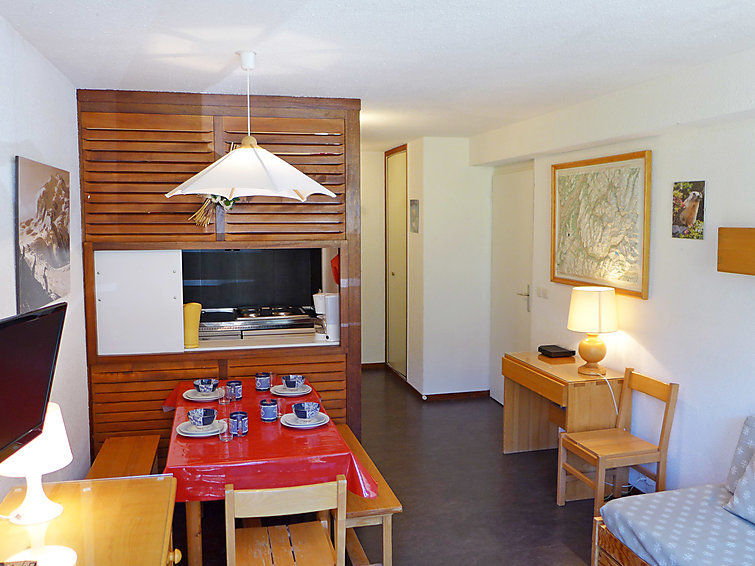 Appartement 1-kamer 27 m2 op de 3e verdieping. Licht, doelmatig en mooi ingericht: woon-/eetkamer met 1 uitschuifbaar bed (2 pers. 2 x 80 cm), TV (Flatscreen TV). Hal met 1 x 2 stapelbedden (80 cm). Kookhoek (mini-oven, afwasmachine, 4 inductiekookplaten, magnetron, elektrische koffiemachine, pads voor de koffiemachine (Nespresso) extra). Bad/WC. Verwarming. Balkon, op het zuiden gelegen. Ter beschikking: Internet (Internet (WiFi), gratis). Rookmelders. 2754