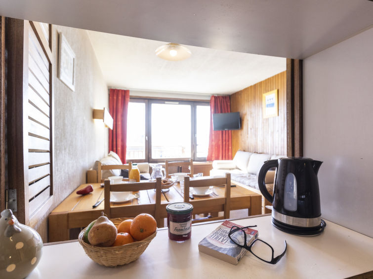 Residentie "Les Hauts de Chavière". Boven Val Thorens, in de wijk Peclet, rustige, zonnige ligging, 100 m van het skigebied, op het zuiden. In het complex: lift, berging voor ski's, centrale verwarming. In de winter sneeuwkettingen aanbevolen. Openbare parkeergarage op 300 m, extra. Winkel, levensmiddelenwinkel, supermarkt 100 m, winkelcentrum 500 m, restaurant 100 m, bar 200 m, bakkerij 650 m, voetgangersgebied 500 m, centrum te voet bereikbaar in 5 minuten, bushalte 800 m. Sportcentrum 650 m, kabelbaan, stoeltjeslift, kabelbaan op, skipisten, skiverhuur 50 m, skibushalte 60 m, skischool 150 m, kinderoppasdienst, ijsbaan 50 m.