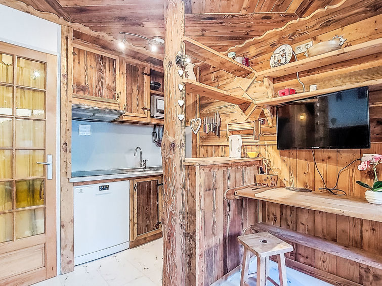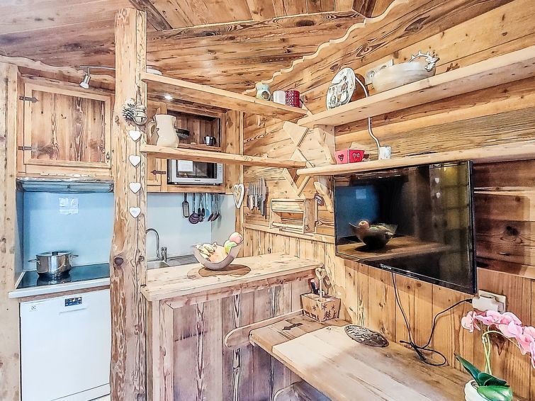 "Serac Y6", studio 1-kamer 29 m2, op het noorden gelegen. Modern en met veel hout ingericht: woon-/slaapkamer met veranda met 1 2-pers divanbed (1 x 140 cm, lengte 190 cm), TV, Flatscreen TV en elektrische verwarming. Cabine met 1 x 2 stapelbedden (90 cm, lengte 190 cm) met eettafel en eethoek. Uitgang naar de veranda. Kookhoek (afwasmachine, 3 inductiekookplaten, waterkoker, magnetron, grill, elektrische koffiemachine, kookeiland). Douche, aparte WC. Natuurstenen vloeren. Beperkt uitzicht op de bergen, het dal, de skipiste en de plaats. Ter beschikking: Internet (WiFi, extra). Niet rokers woning. Rookmelders. Aanbod door een particulier volgens art. 155, IV van CGI.