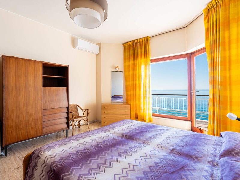 "Calandre Mare", appartement 3-kamers 90 m2 op de 1e verdieping. Mooi en gezellig ingericht: woon-/eetkamer met panoramavenster met 1 divanbed (140 cm, lengte 200 cm). Uitgang naar het balkon. 1 2-pers. kamer. Uitgang naar het balkon. 1 kamer met 2 bedden (90 cm, lengte 200 cm). Keuken (oven, 4 kookpitten (vlammen), broodrooster, waterkoker). Douche/bidet/WC. Gas-verwarming. Verwarming alleen beschikbaar van 01.11. tot 15.04. Groot balkon 16 m2. Balkonmeubilair. Zeer mooi panoramazicht op zee. Ter beschikking: wasmachine, kinderbed tot 2 jaar, haardroger. Internet (WiFi, gratis). Parkeerplaats bij het huis. Maximaal 1 huisdier/hond toegestaan. IT008065B4GAMI5QEE