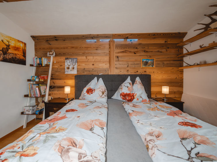 "Dachstein Südwand", appartement 3-kamers 70 m2 op de 2e verdieping. Licht, gedeeltelijk afgeschuinde daken, gezellig ingericht: 1 kamer met 1 bed, 1 2-pers bed, Sat-TV en internationale TV-zenders (Flatscreen TV). Uitgang naar het balkon. 1 2-pers. kamer met Sat-TV en internationale TV-zenders (Flatscreen TV). Uitgang naar het balkon. Woonkeuken (oven, afwasmachine, 4 keramische glas kookplaten, broodrooster, waterkoker, magnetron, elektrische koffiemachine) met eethoek. Bad/douche/WC. Verwarming. Parketvloeren. Balkonmeubilair. Zeer mooi panoramazicht op de bergen. Ter beschikking: Internet (WiFi, gratis). Niet rokers woning. 1 huisdier/hond toegestaan. 282-0000282-01