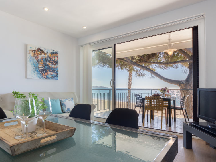 Vilafortuny 1 km van Cambrils: Groot, gezellig flatgebouw "Reus Mediterrani". 10 m van zee, 10 m van het strand, directe toegang tot het strand. Voor medegebruik: openluchtzwembad hoekig omheind (seizoensgebonden beschikbaarheid: 25.Jun. - 10.Sep.). Kinderzwembad, buitendouche, tennisbaan, tafeltennis, kinderspeelplaats, parkeerplaats nr. 61. Winkel, supermarkt, restaurant 300 m, bushalte 5 m. Geen lift. Groepen jongeren uitsluitend op aanvraag.
